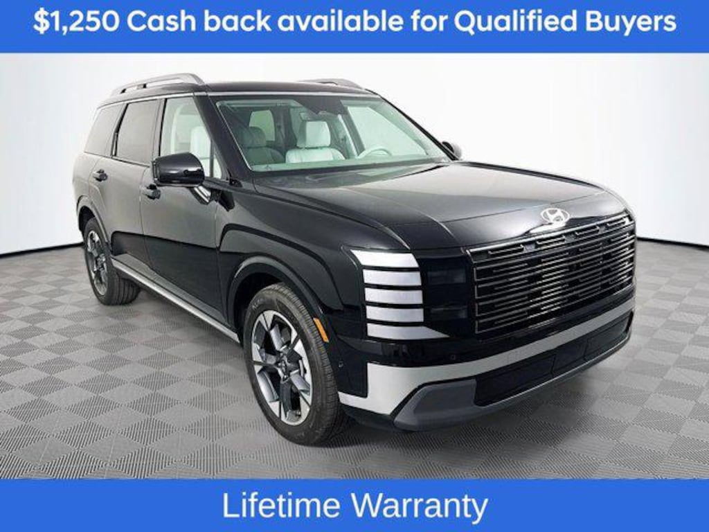 Includes:Option Group 01, 14 Speakers, 3rd row seats: split-bench, 4-Wheel Disc Brakes, ABS brakes, Air Conditioning, Alloy wheels, AM/FM radio: SiriusXM, Apple CarPlay & Android Auto, Audio memory, Auto High-beam Headlights, Auto-dimming door mirrors, Auto-dimming Rear-View mirror, Auto-leveling suspension, Automatic temperature control, Brake assist, Bumpers: body-color, Cargo Net, Cargo Organizer, Cargo Tray, Carpeted Floor Mats, Compass, Delay-off headlights, Driver door bin, Driver vanity mirror, Dual front impact airbags, Dual front side impact airbags, Electronic Stability Control, Emergency communication system: Bluelink+, Exterior Parking Camera Rear, First Aid Kit, Four wheel independent suspension, Front anti-roll bar, Front Bucket Seats, Front Center Armrest, Front dual zone A/C, Front reading lights, Fully automatic headlights, Garage door transmitter: HomeLink, Genuine wood console insert, Genuine wood dashboard insert, Heated & Ventilated Front Bucket Seats, Heated door mirrors, Heated front seats, Heated rear seats, Heated steering wheel, HVAC memory, Illuminated entry, Knee airbag, Leather Seat Trim, Leather steering wheel, Low tire pressure warning, Memory seat, Navigation System, Occupant sensing airbag, Outside temperature display, Overhead airbag, Overhead console, Panic alarm, Passenger door bin, Passenger vanity mirror, Power door mirrors, Power driver seat, Power Liftgate, Power moonroof, Power passenger seat, Power steering, Power windows, Radio data system, Radio: Infotainment Navigation System, Rear air conditioning, Rear anti-roll bar, Rear audio controls, Rear reading lights, Rear side impact airbag, Rear window defroster, Rear window wiper, Reclining 3rd row seat, Remote keyless entry, Security system, Speed control, Split folding rear seat, Spoiler, Steering wheel mounted audio controls, Tachometer, Telescoping steering wheel, Tilt steering wheel, Traction control, Trip computer, Turn signal indicator mirrors, Variably intermittent wipers, Ventilated front seats, Ventilated rear seats, and Wheels: 20" x 8.0J Alloy. Not all customers may qualify for all rebates listed, see dealer for details. Price includes: $750 - Hyundai HMF Dealer Choice : $750 discount and 5.39% APR for 24 months. $44.05 per $1000 financed. Available to well qualified buyers who finance through Hyundai Motor Finance. H704. Exp. 02/02/2026