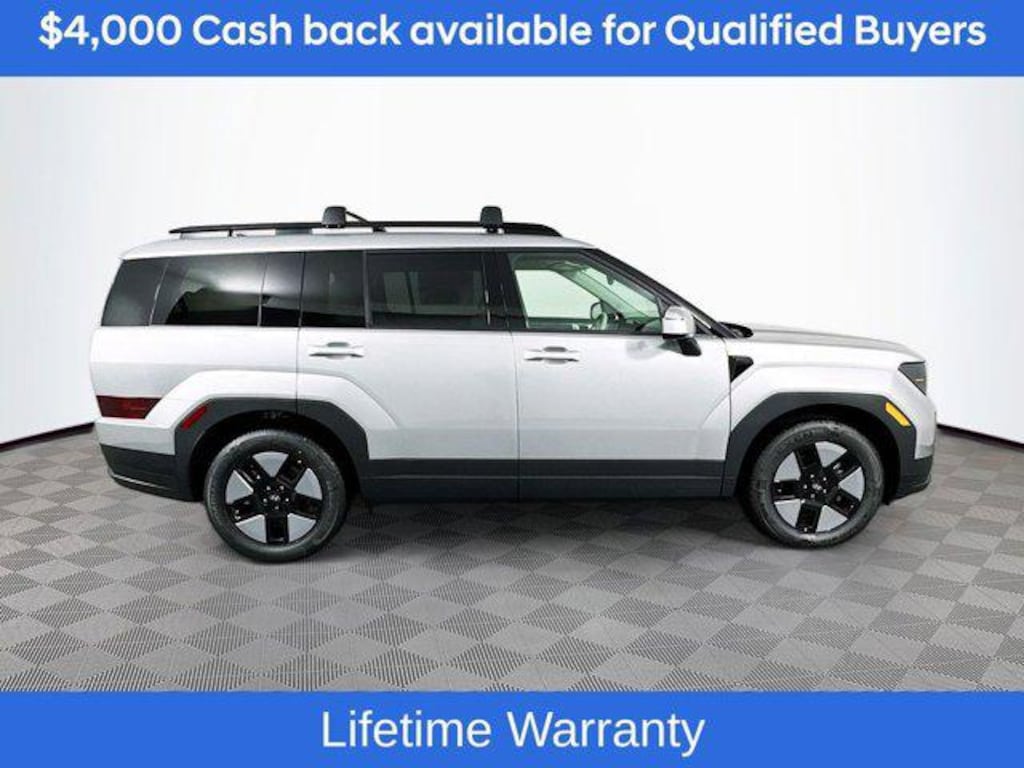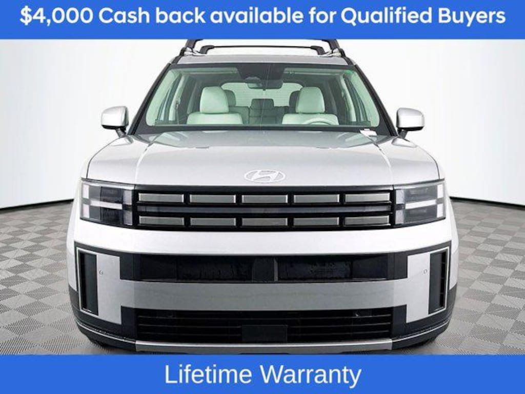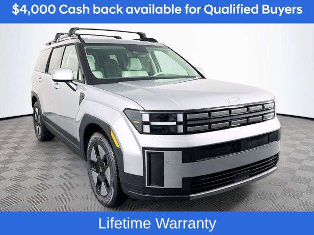 Includes:Option Group 01, 18" x 7.5J Alloy Wheels, 3rd row seats: bench, 4-Wheel Disc Brakes, 6 Speakers, ABS brakes, Air Conditioning, Alloy wheels, AM/FM radio: SiriusXM, Apple CarPlay & Android Auto, Auto High-beam Headlights, Automatic temperature control, Brake assist, Bumpers: body-color, Cargo Net, Cargo Tray, Carpeted Floor Mats, Delay-off headlights, Driver door bin, Driver vanity mirror, Dual front impact airbags, Dual front side impact airbags, Electronic Stability Control, Emergency communication system, Exterior Parking Camera Rear, First Aid Kit, Four wheel independent suspension, Front anti-roll bar, Front Bucket Seats, Front Center Armrest, Front dual zone A/C, Front reading lights, Fully automatic headlights, H-Tex Leatherette Seat Trim, Heated door mirrors, Heated Front Bucket Seats, Heated front seats, Illuminated entry, Knee airbag, Leather steering wheel, Low tire pressure warning, Occupant sensing airbag, Outside temperature display, Overhead airbag, Overhead console, Panic alarm, Passenger door bin, Passenger vanity mirror, Power door mirrors, Power driver seat, Power Liftgate, Power steering, Power windows, Radio: AM/FM/HD Display Audio, Rear anti-roll bar, Rear seat center armrest, Rear side impact airbag, Rear window defroster, Rear window wiper, Remote keyless entry, Roadside Assistance Kit, Roof Rack Crossbars, Security system, Speed control, Speed-sensing steering, Split folding rear seat, Spoiler, Steering wheel mounted audio controls, Tachometer, Telescoping steering wheel, Tilt steering wheel, Traction control, Trip computer, Turn signal indicator mirrors, and Variably intermittent wipers. Not all customers may qualify for all rebates listed, see dealer for details. Price includes: $4000 - Hyundai HMF Dealer Choice : $4000 discount and 5.39% APR for 24 months. $44.05 per $1000 financed. Available to well qualified buyers who finance through Hyundai Motor Finance. H704. Exp. 03/31/2026
