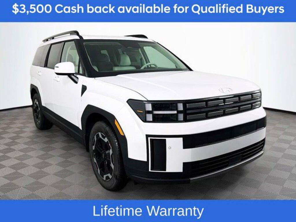 Includes:Option Group 01, 18" x 7.5J Alloy Wheels, 3rd row seats: bench, 4-Wheel Disc Brakes, 6 Speakers, ABS brakes, Air Conditioning, Alloy wheels, AM/FM radio: SiriusXM, Apple CarPlay & Android Auto, Auto High-beam Headlights, Automatic temperature control, Brake assist, Bumpers: body-color, Cargo Cover/Screen, Cargo Net, Cargo Tray, Carpeted Floor Mats, Delay-off headlights, Driver door bin, Driver vanity mirror, Dual front impact airbags, Dual front side impact airbags, Electronic Stability Control, Emergency communication system, Exterior Parking Camera Rear, First Aid Kit, Four wheel independent suspension, Front anti-roll bar, Front Bucket Seats, Front Center Armrest, Front dual zone A/C, Front reading lights, Fully automatic headlights, H-Tex Leatherette Seat Trim, Heated door mirrors, Heated Front Bucket Seats, Heated front seats, Illuminated entry, Knee airbag, Leather steering wheel, Low tire pressure warning, Mudguards, Occupant sensing airbag, Outside temperature display, Overhead airbag, Overhead console, Panic alarm, Passenger door bin, Passenger vanity mirror, Power door mirrors, Power driver seat, Power Liftgate, Power steering, Power windows, Radio: AM/FM/HD Display Audio, Rear anti-roll bar, Rear seat center armrest, Rear side impact airbag, Rear window defroster, Rear window wiper, Remote keyless entry, Security system, Speed control, Speed-sensing steering, Split folding rear seat, Spoiler, Steering wheel mounted audio controls, Tachometer, Telescoping steering wheel, Tilt steering wheel, Traction control, Trip computer, Turn signal indicator mirrors, and Variably intermittent wipers. Not all customers may qualify for all rebates listed, see dealer for details. Price includes: $3500 - Hyundai HMF Dealer Choice : $3500 discount and 5.39% APR for 24 months. $44.05 per $1000 financed. Available to well qualified buyers who finance through Hyundai Motor Finance. H704. Exp. 03/02/2026
