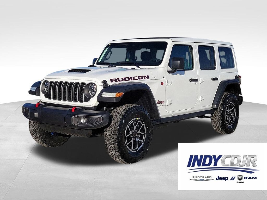 Bright White Clearcoat 2026 Jeep Wrangler Rubicon 4WD 8-Speed Automatic 2.0L I4 DOHC 12.3" Touchscreen Display, 4-Wheel Disc Brakes, 4.10 Rear Axle Ratio, 4G LTE Wi-Fi Hot Spot, 8 Speakers, ABS brakes, Air Conditioning, Alloy wheels, Alpine Premium Audio System, AM/FM radio: SiriusXM with 360L, Apple CarPlay, Apple CarPlay/Android Auto, Auto High Beam Headlamp Control, Auto-Dimming Rear-View Mirror, Automatic temperature control, Aux Battery, Auxiliary Switches, Blind Spot and Cross Path Detection, Brake assist, Class II Receiver Hitch, Cloth Low-Back Bucket Seats, Compass, Connected Travel and Traffic Services, Connectivity - US/Canada, Convenience Group, Delay-off headlights, Driver door bin, Driver vanity mirror, Dual front impact airbags, Dual front side impact airbags, Electronic Stability Control, Emergency communication system: Jeep Connect, For More Info, Call 800-643-2112, Front anti-roll bar, Front Bucket Seats, Front Center Armrest w/Storage, Front dual zone A/C, Front fog lights, Front reading lights, Fully automatic headlights, Google Android Auto, GPS Navigation, HD Radio, Heated door mirrors, Heated Front Seats, Heated Steering Wheel, Illuminated entry, Integrated Center Stack Radio, Integrated Off-Road Camera, Integrated roll-over protection, Integrated Voice Command with Bluetooth, Low tire pressure warning, MOPAR All-Weather Floor Mats, Non-Lock Fuel Cap Without Discriminator, Occupant sensing airbag, Outside temperature display, Overhead airbag, Panic alarm, ParkSense Rear Park Assist System, ParkView Rear Back-Up Camera, Passenger door bin, Passenger vanity mirror, Performance Hood, Performance Suspension, Power door mirrors, Power steering, Power Top Quarter Window Storage Bag, Power windows, Quick Order Package 22R Rubicon, Radio data system, Radio: Uconnect 5 Navigation with 12.3" Display, Radio: Uconnect 5 with 12.3" Display, Rear anti-roll bar, Rear reading lights, Rear Window Defroster, Rear Window Wiper/Washer, Remote keyless entry, Removable Rear Quarter Windows, Safety Group, Security system, SiriusXM Radio Service, SiriusXM with 360L, Sky One-Touch Power Top, Speed control, Split folding rear seat, Steel Performance Hood Package, Steering wheel mounted audio controls, Stop-Start Dual Battery System, Tachometer, Technology Group, Telescoping steering wheel, Tilt steering wheel, Traction control, Trip computer, Universal Garage Door Opener, Variably intermittent wipers, Voltmeter, Wheels: 17" x 7.5" Machined/Painted Black.