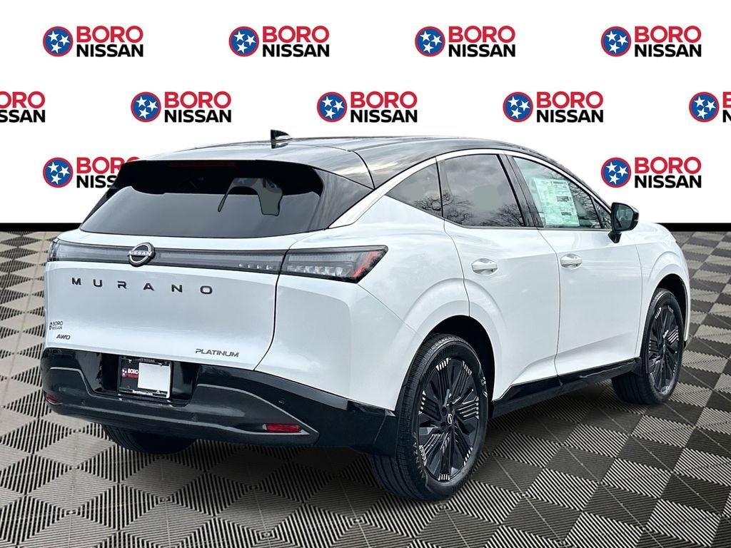 Everest White Pearl Tricoat/Super Black 2026 Nissan Murano Platinum AWD 9-Speed Automatic I4 APPLE ANDRIOD CAR PLAY, REAR BACKUP CAMERA, BLUETOOTH, 9-Speed Automatic, AWD, 10 Speakers, 2-Tone w/Premium Paint, 21" Alloy Wheels, 3-Position Cargo Area Protector, 4-Wheel Disc Brakes, ABS brakes, Air Conditioning, Alloy wheels, AM/FM radio: SiriusXM w/360L, Auto High-beam Headlights, Auto tilt-away steering wheel, Auto-dimming Rear-View mirror, Automatic temperature control, Brake assist, Bumpers: body-color, Cargo Net, Cargo Package, Carpeted Floor & Cargo Mats, Child-Seat-Sensing Airbag, Compass, Delay-off headlights, Driver door bin, Driver vanity mirror, Dual front impact airbags, Dual front side impact airbags, Electronic Stability Control, Emergency communication system: NissanConnect Services, First Aid Kit, Four wheel independent suspension, Front anti-roll bar, Front Bucket Seats, Front Center Armrest, Front dual zone A/C, Front reading lights, Fully automatic headlights, Garage door transmitter: HomeLink, Heads-Up Display, Heated & Ventilated Front Bucket Seats w/Massage, Heated door mirrors, Heated front seats, Heated rear seats, Heated steering wheel, Illuminated entry, Illuminated Kick Plates, Knee airbag, Low tire pressure warning, Memory seat, Navigation system: NissanConnect with Navigation and Services, Occupant sensing airbag, Outside temperature display, Overhead airbag, Overhead console, Painted Splash Guards, Panic alarm, Passenger door bin, Passenger vanity mirror, Power door mirrors, Power driver seat, Power Liftgate, Power moonroof: Panoramic, Power passenger seat, Power steering, Power windows, Quilted Semi-Aniline Leather-Appointed Seat Trim, Radio data system, Radio: NissanConnect w/Hybrid Radio, Rain sensing wipers, Rear anti-roll bar, Rear reading lights, Rear seat center armrest, Rear side impact airbag, Rear window defroster, Rear window wiper, Remote keyless entry, Retractable Cargo Cover, Security system, Speed control, Speed-Sensitive Wipers, Split folding rear seat, Spoiler, Steering wheel memory, Steering wheel mounted audio controls, Tachometer, Telescoping steering wheel, Tilt steering wheel, Traction control, Trip computer, Turn signal indicator mirrors, Variably intermittent wipers, Ventilated front seats, Wireless Apple CarPlay/Wireless Android Auto, SUNROOF, LEATHER, NAVIGATION, ALLOY WHEELS, 9-Speed Automatic, AWD.