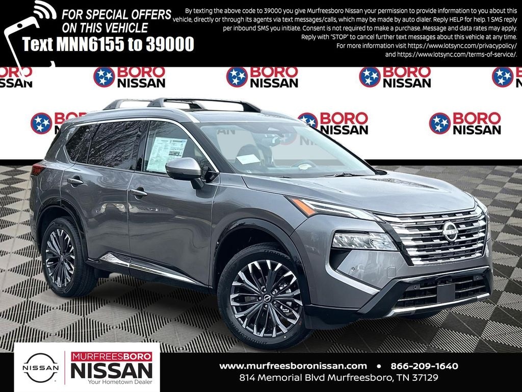 Gun Metallic 2026 Nissan Rogue Platinum AWD CVT with Xtronic 1.5L DOHC APPLE ANDRIOD CAR PLAY, REAR BACKUP CAMERA, BLUETOOTH, AWD, 10 Speakers, 4-Wheel Disc Brakes, ABS brakes, Air Conditioning, Alloy wheels, AM/FM radio: SiriusXM w/360L, Auto High-beam Headlights, Auto-dimming Rear-View mirror, Automatic temperature control, Bose Premium Audio System, Brake assist, Bumpers: body-color, Chrome Rear Bumper Protector, Delay-off headlights, Driver door bin, Driver vanity mirror, Dual front impact airbags, Dual front side impact airbags, Electronic Stability Control, Emergency communication system: NissanConnect Services, First Aid Kit, Floor Mats with 2-Piece Cargo Area Protector, Four wheel independent suspension, Front anti-roll bar, Front Bucket Seats, Front Center Armrest, Front dual zone A/C, Front reading lights, Fully automatic headlights, Garage door transmitter: myQ Connected Garage, Head-Up Display, Heads-Up Display, Heated door mirrors, Heated Front Bucket Seats, Heated front seats, Heated Rear Seats, Heated steering wheel, Illuminated entry, Knee airbag, Low tire pressure warning, Memory seat, Motion-Activated Power Liftgate, Navigation system: Google Maps, Occupant sensing airbag, Outside temperature display, Overhead airbag, Overhead console, Panic alarm, Passenger door bin, Passenger vanity mirror, Platinum Premium Package, Power door mirrors, Power driver seat, Power Liftgate, Power moonroof, Power passenger seat, Power steering, Power windows, Quilted Semi-Aniline Leather-Appointed Seat Trim, Radio data system, Radio: AM/FM NissanConnect with Navigation, Rear anti-roll bar, Rear reading lights, Rear seat center armrest, Rear side impact airbag, Rear window defroster, Rear window wiper, Remote keyless entry, Roof Rail Cross Bars, Security system, Speed control, Speed-sensing steering, Speed-Sensitive Wipers, Split folding rear seat, Spoiler, Steering wheel mounted audio controls, Tachometer, Telescoping steering wheel, Tilt steering wheel, Traction control, Tri-Zone Automatic Temperature Control, Trip computer, Turn signal indicator mirrors, Variably intermittent wipers, Wheels: 19" Unique Dark Painted Aluminum Alloy, Wireless Apple CarPlay/Wireless Android Auto, SUNROOF, LEATHER, NAVIGATION, ALLOY WHEELS, AWD.