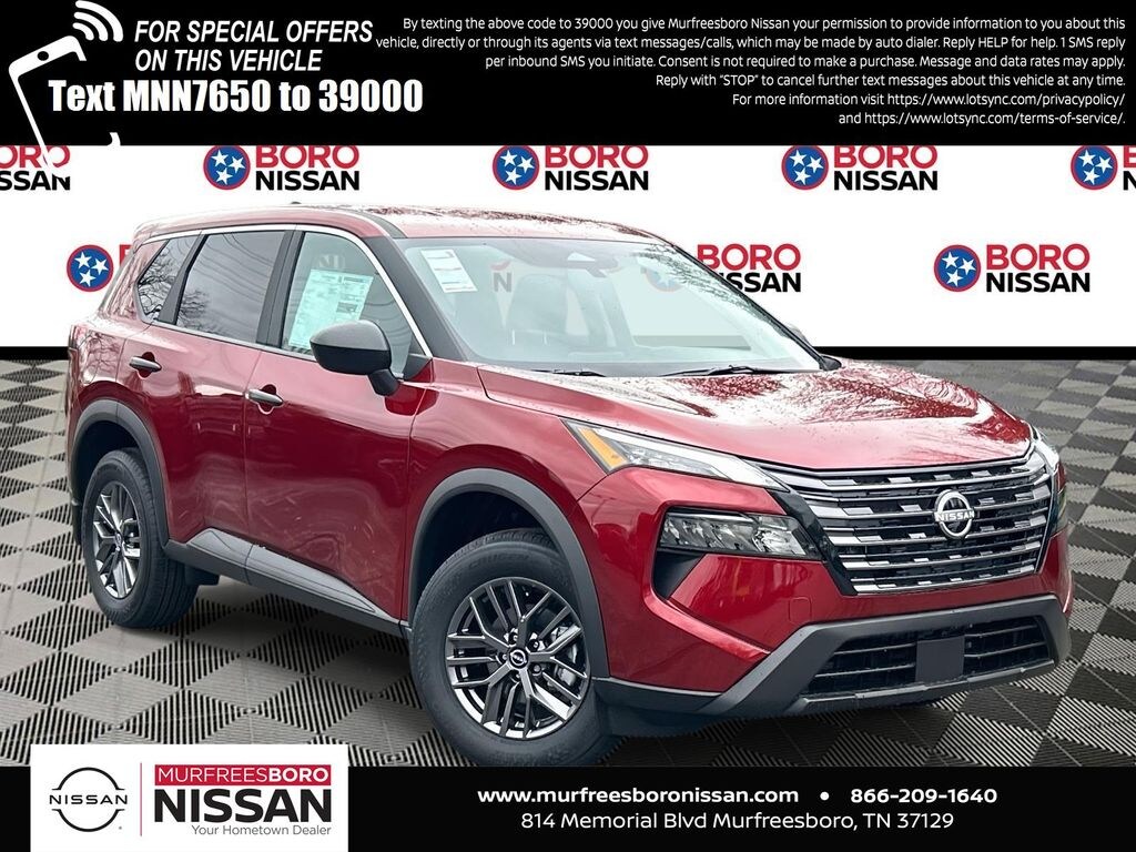 Scarlet Ember Tintcoat 2026 Nissan Rogue S FWD CVT with Xtronic 1.5L DOHC APPLE ANDRIOD CAR PLAY, REAR BACKUP CAMERA, BLUETOOTH, 17" Alloy Wheels, 4 Speakers, 4-Wheel Disc Brakes, ABS brakes, Air Conditioning, Alloy wheels, AM/FM radio: Sirius, Apple CarPlay/Android Auto, Auto High-beam Headlights, Black Splash Guards (set of 4), Blind Spot Warning, Brake assist, Bumpers: body-color, Cloth Seat Trim, Delay-off headlights, Driver door bin, Driver vanity mirror, Dual front impact airbags, Dual front side impact airbags, Electronic Stability Control, First Aid Kit, Floor Mats with 1-Piece Cargo Area Protector, Four wheel independent suspension, Front anti-roll bar, Front Bucket Seats, Front Center Armrest, Front reading lights, Fully automatic headlights, Illuminated entry, Knee airbag, Low tire pressure warning, Occupant sensing airbag, Outside temperature display, Overhead airbag, Overhead console, Panic alarm, Passenger door bin, Passenger vanity mirror, Power door mirrors, Power steering, Power windows, Premium Paint, Radio data system, Radio: AM/FM NissanConnect, Rear anti-roll bar, Rear seat center armrest, Rear side impact airbag, Rear window defroster, Rear window wiper, Remote keyless entry, Speed control, Speed-sensing steering, Speed-Sensitive Wipers, Split folding rear seat, Spoiler, Steering wheel mounted audio controls, Tachometer, Telescoping steering wheel, Tilt steering wheel, Traction control, Trip computer, Variably intermittent wipers, NAVIGATION, ALLOY WHEELS.