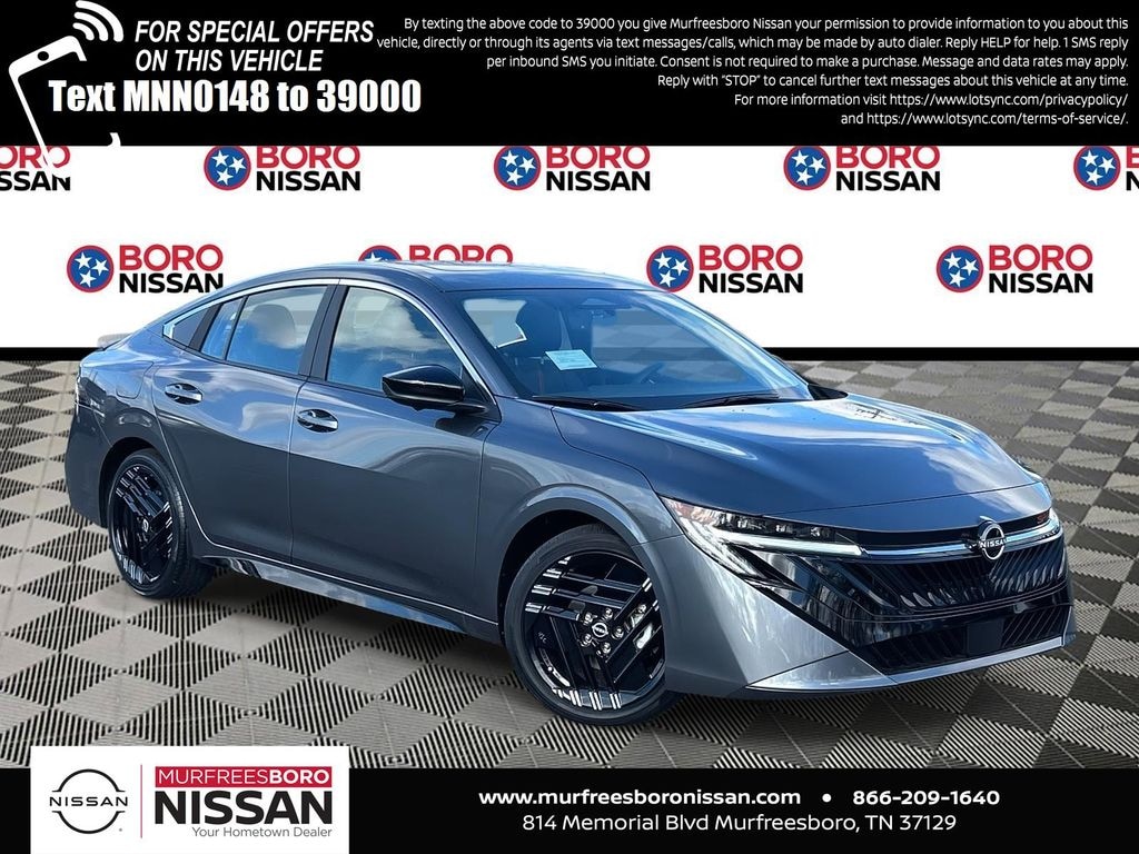 Gun Metallic 2026 Nissan Sentra SR FWD CVT with Xtronic 2.0L I4 DOHC APPLE ANDRIOD CAR PLAY, REAR BACKUP CAMERA, BLUETOOTH, CVT with Xtronic, Sport Cloth, ABS brakes, Active Cruise Control, Alloy wheels, Electronic Stability Control, Heated door mirrors, Illuminated entry, Low tire pressure warning, Remote keyless entry, Traction control, 18" Machined Alloy Wheels, 4-Wheel Disc Brakes, 6 Speakers, Air Conditioning, AM/FM radio: Sirius, Auto High-beam Headlights, Automatic temperature control, Brake assist, Bumpers: body-color, Delay-off headlights, Driver door bin, Driver vanity mirror, Dual front impact airbags, Dual front side impact airbags, Emergency communication system: NissanConnect(R) Services powered by SiriusXM(R), Four wheel independent suspension, Front anti-roll bar, Front Bucket Seats, Front Center Armrest, Front reading lights, Fully automatic headlights, Garage door transmitter, Knee airbag, Leather steering wheel, Occupant sensing airbag, Outside temperature display, Overhead airbag, Overhead console, Panic alarm, Passenger door bin, Passenger vanity mirror, Power door mirrors, Power steering, Power windows, Radio data system, Radio: AM/FM with RDS/MP3, Rear anti-roll bar, Rear seat center armrest, Rear side impact airbag, Rear window defroster, Security system, Speed control, Speed-sensing steering, Split folding rear seat, Spoiler, Sport Cloth Seat Trim, Steering wheel mounted audio controls, Tachometer, Telescoping steering wheel, Tilt steering wheel, Trip computer, Turn signal indicator mirrors, Variably intermittent wipers, Wireless Apple CarPlay/Wireless Android Auto, SUNROOF, LEATHER, NAVIGATION, ALLOY WHEELS, CVT with Xtronic, Sport Cloth, ABS brakes, Active Cruise Control, Alloy wheels, Electronic Stability Control, Heated door mirrors, Illuminated entry, Low tire pressure warning, Remote keyless entry, Traction control.