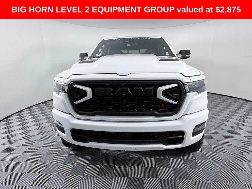 BLACK WIDOW PACKAGE!! 6 INCH LIFT, FOX PERFORMANCE SHOCKS, 22 INCH WHEELS, 35 INCH ALL TERRAIN TIRES, BLACK WIDOW RED CALIPER COVERS, BODY COLOR FENDER FLARES, POWER RUNNING BOARDS, BLACK WIDOW CUSTOM HOOD VENTS AND GRILLE, PERFORMANCE EXHAUST, CUSTOM LEATHER, RED LED LIGHTING, ALL WEATHER MATS, TINTED WINDOWS, BLACK WIDOW WINDSHIELD BANNER, BADGING, PUDDLE LIGHTS AND CENTER CPAS, LEATHER DOOR INSERTS, INTEIROR BADGING, MUST SEE!!!!115V Auxiliary Power Outlet, 115V Auxiliary Rear Power Outlet, 12" Touchscreen Display, 2nd Row in Floor Storage Bins, 3 Rear Seat Head Restraints, 33 Gallon Fuel Tank, 4 Way Front Headrests, 4-Wheel Disc Brakes, 400W Inverter, 48V Belt Starter Generator, 4G LTE Wi-Fi Hot Spot, 6 Speakers, 9 Amplified Speakers with Subwoofer, ABS brakes, Accent Color Door Handles, Accent Color Premium Power Mirrors, Accent Color Tailgate Handle, Air Conditioning, Air Conditioning ATC with Dual Zone Control, Alloy wheels, AM/FM radio, Anti-Spin Differential Rear Axle, Apple CarPlay, Apple CarPlay/Android Auto, Auto High-beam Headlights, Auto Power-Folding Mirrors, Auto-Dimming Exterior Driver Mirror, Auto-Dimming Rear-View Mirror, Bed Utility Group, Big Horn Level 2 Equipment Group, Black Exterior Mirrors, Black Exterior Truck Badging, Black Headlamp Bezels, Black Interior Accents, Black Painted Exterior Mirrors Caps, Black Premium Power Mirrors, Black Tail Lamp Bezels, Body Color Fender Flares, Body Color Front Bumper, Body Color Rear Bumper with Step Pads, Brake assist, Bucket Seats, Bumpers: chrome, Center Console Parts Module, Cloth Bucket Seats, Cluster 12" TFT Color Display, Cluster 7.0" TFT Color Display, Compass, Configurable Drive Mode, Connected Travel and Traffic Services, Connectivity - US/Canada, Convex Wide-Angle Exterior Mirror Insert, Delay-off headlights, Deluxe Cloth Bucket Seats, Disassociated Touchscreen Display, Dome Dual LED Reading Lamp, Driver door bin, Dual Exhaust with Black Tips, Dual front impact airbags, Dual front side impact airbags, Dual-Pane Panoramic Sunroof, Electronic Stability Control, Exterior 115V AC Outlet, Exterior Mirrors Courtesy Lamps, Exterior Mirrors with Heating Element, Exterior Mirrors with Supplemental Signals, Front anti-roll bar, Front Bucket Seats, Front Center Armrest w/Storage, Front fog lights, Front License Plate Bracket, Front reading lights, Front Seat Back Map Pockets, Front wheel independent suspension, Full Length Floor Console, Fully automatic headlights, Global Telematics Box Module, Glove Box Lamp, Google Android Auto, GPS Antenna Input, GPS Navigation, Grille Black Surround Black Mesh, HD Radio, Heated door mirrors, Heated Front Seats, Heated Steering Wheel, Illuminated entry, Integrated Center Stack Radio, Integrated Voice Command with Bluetooth, Leather Wrapped Steering Wheel, LED Dome Lamp with on/Off Switch, LED Footwell Lighting, Low tire pressure warning, Manual Adjust 4-Way Driver Seat, Manual Adjust 4-Way Front Passenger Seat, Manual Folding Exterior Mirrors, Manufacturer's Statement of Origin, Media Hub with 2 Charge Only USBs, MOPAR 4 Adjustable Cargo Tie-Down Hooks, MOPAR Spray in Bedliner, Night Edition, Occupant sensing airbag, Outside temperature display, Overhead airbag, Overhead console, Overhead LED Lamps, Panic alarm, ParkView Rear Back-Up Camera, Passenger door bin, Passenger vanity mirror, Pick-Up Box Lighting, Power 2-Way Driver Lumbar Adjust, Power Adjust 8-Way Driver Seat, Power Adjustable Pedals, Power door mirrors, Power steering, Power windows, Premium Overhead Console, Quick Order Package 27Z Big Horn, Radio data system, Radio: Uconnect 5 Navigation with 12.0" Display, Radio: Uconnect 5 W with 8.4" Display, RAM Grille Badge - Black, RAM Grille Badge - Chrome, Rear 60/40 Folding Seat, Rear anti-roll bar, Rear Center Armrest, Rear Power Sliding Window, Rear step bumper, Rear Underseat Compartment Storage, Rear Window Defroster, Remote keyless entry, Remote Tailgate Release, Security Alarm, SiriusXM Radio Service, SiriusXM with 360L, Speed control, Steering Wheel Mounted Audio Controls, Sun Visors with Illuminated Vanity Mirrors, Supplier Part Tracking (J-1), Tachometer, Telescoping steering wheel, Tilt steering wheel, Traction control, Tri-Fold Tonneau Cover, Trip computer, Universal Garage Door Opener, USB H Price includes: $2000 - 2026 National SFS Lease Loyalty Bonus Cash . Exp. 02/02/2026 $3500 - 2026 National Retail Consumer Cash . Exp. 02/02/2026