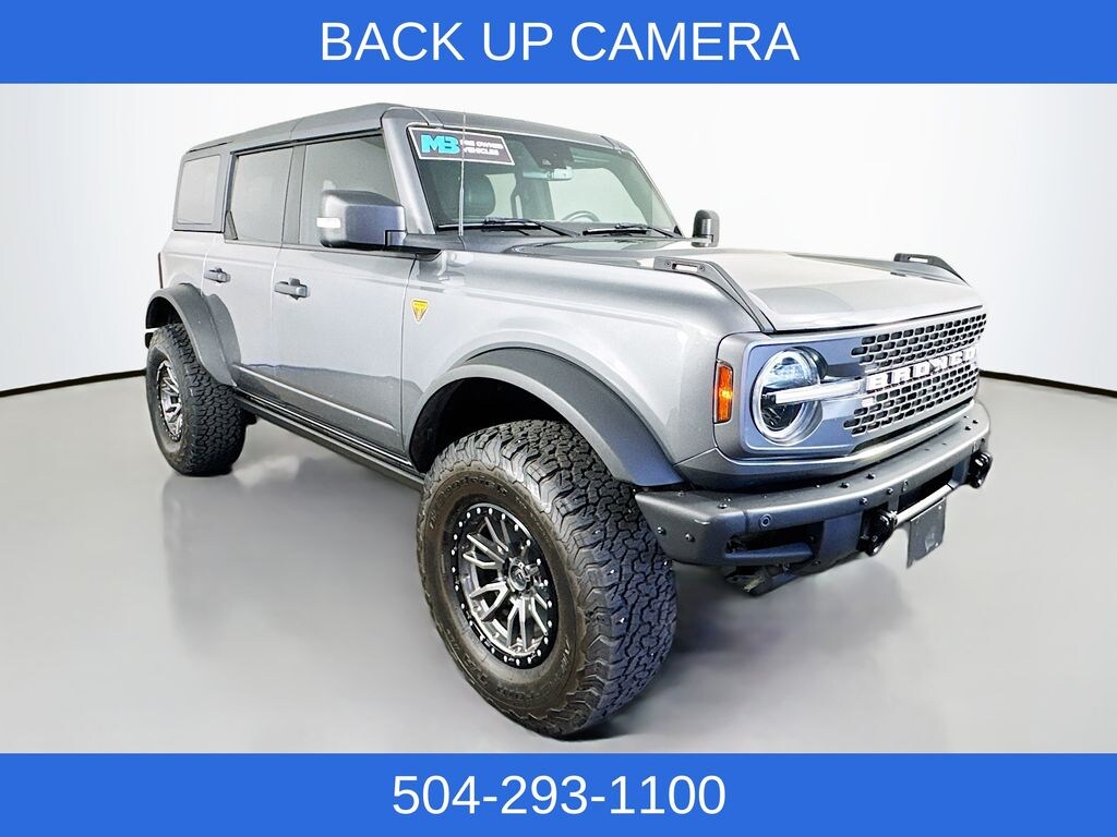 BLUETOOTH, BACK UP CAMERA, APPLE/ANDROID CARPLAY, LEATHER, LOADED OUT WITH OVER $15K OF ADDED OPTIONS, Bronco Badlands, 2.7L EcoBoost V6, 4WD, Gray Metallic, 12" LCD Capacitive Touchscreen w/Swipe Capability, 2 Smart Charging USB Ports In Dashboard, 2-Door Intelligent Access w/Lock/Unlock, 360-Degree Camera, 4.7 Final Drive Ratio, Adaptive Cruise Control, Additional Sound Deadening, Ambient Footwell Lighting, Auto-Dimming Interior Rear-View Mirror, Connected Built-In Navigation, Dr & Pass Illuminated Sliding Visor Vanity Mirrors, Dual-Zone Electronic Automatic Temperature Control, Enhanced Voice Recognition, Equipment Group 334A Lux Package, Evasive Steering Assist, Front Parking Sensors, Front Row Heated Seats, Heated Steering Wheel, High Clearance Fender Flares, High Clearance Suspension, Information on Demand Panel, Position-Sensitive Bilstein Shock Absorbers, Power Outlet - Back Side of Center Floor Console, Radio: B&O Sound System by Bang & Olufsen, Rear Parking Sensors, Sasquatch Package, Sideview Mirrors, Universal Garage Door Opener, Wheels: 17" Black High Gloss-Painted Aluminum, Wireless Charging Pad.
