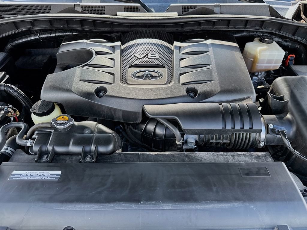 Well kept, luxury for less!!!Clean CARFAX.14/20 City/Highway MPGProASSIST Package (Blind Spot Intervention (BSI), Intelligent Cruise Control, Lane Departure Prevention (LDP), and Smart Rear View Mirror), 13 Speakers, 2.937 Axle Ratio, 3rd row seats: split-bench, 4-Wheel Disc Brakes, ABS brakes, Air Conditioning, Alloy wheels, AM/FM radio: SiriusXM, Anti-whiplash front head restraints, Apple CarPlay/Android Auto, Auto High-beam Headlights, Auto tilt-away steering wheel, Auto-dimming door mirrors, Auto-dimming Rear-View mirror, Auto-leveling suspension, Automatic temperature control, Blind Spot Warning, Brake assist, Bumpers: body-color, CD player, Compass, Delay-off headlights, Driver door bin, Driver vanity mirror, Dual front impact airbags, Dual front side impact airbags, DVD-Audio, Electronic Stability Control, Emergency communication system: INFINITI Connection, Four wheel independent suspension, Front anti-roll bar, Front Bucket Seats, Front Center Armrest, Front dual zone A/C, Front fog lights, Front reading lights, Fully automatic headlights, Garage door transmitter: HomeLink, Heated door mirrors, Heated Front Bucket Seats, Heated front seats, Heated steering wheel, Illuminated entry, Leather Shift Knob, Leather steering wheel, Leather-Appointed Seats, Literature Kit, Low tire pressure warning, Memory seat, Navigation system: INFINITI InTouch Navigation, Occupant sensing airbag, Outside temperature display, Overhead airbag, Overhead console, Panic alarm, Passenger door bin, Passenger vanity mirror, Power door mirrors, Power driver seat, Power Liftgate, Power moonroof, Power passenger seat, Power steering, Power windows, Radiant Illuminated Kick Plates, Radio data system, Radio: AM/FM/HD w/Single In-Dash CD Player & MP3, Rain sensing wipers, Rear air conditioning, Rear anti-roll bar, Rear audio controls, Rear reading lights, Rear seat center armrest, Rear window defroster, Rear window wiper, Reclining 3rd row seat, Remote keyless entry, Security system, Speed control, Speed-sensing steering, Split folding rear seat, Spoiler, Steering wheel memory, Steering wheel mounted audio controls, Tachometer, Telescoping steering wheel, Tilt steering wheel, Traction control, Trip computer, Turn signal indicator mirrors, Variably intermittent wipers, Voltmeter, and Wheels: 20 x 8.0 Aluminum-Alloy.